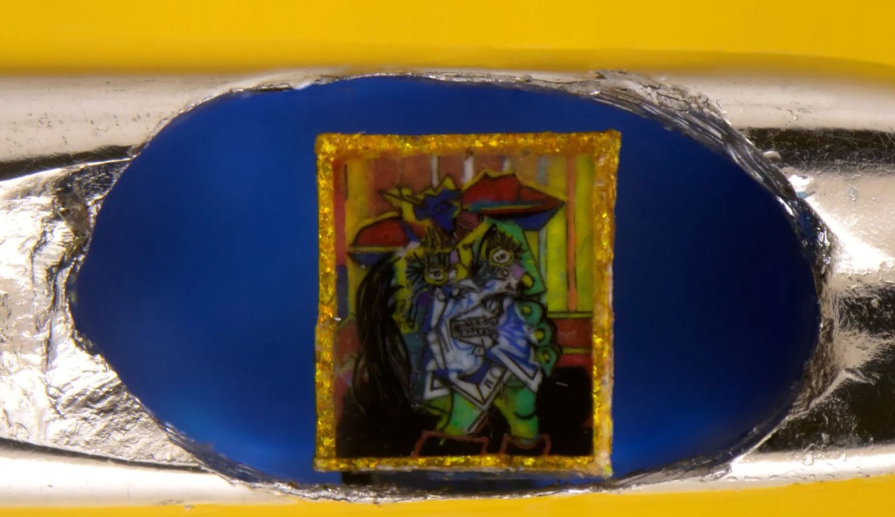 Pablo Picasso A síró nő című képe újraalkotva egy tű fokán. Kép: David A. Lindon