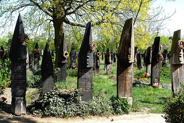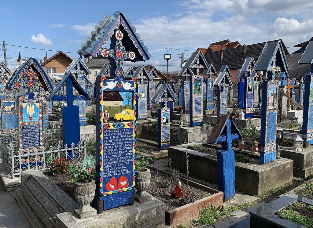 És a bónusz: nem Magyarországon, hanem a romániai Máramaros megyében található Szaplonca község híres temetője, a „Vidám temető”. Ennek a sírkertnek a fejfáin színes festmények és faragások, illetve vicces versek állnak. A festmények sokszor olyan jeleneteket ábrázolnak, amelyeket az elhunyt életéből vettek, de abszurd módon sok fejfán a halál oka szerepel: az egyik festményen például az látszik, ahogy valakit elüt egy autó. A hagyományt 1935-ben indította el egy román szobrász, aki azóta már meghalt (ő előre megírta a sírversét), de a tanítványa máig folytatja a fejfák készítését.