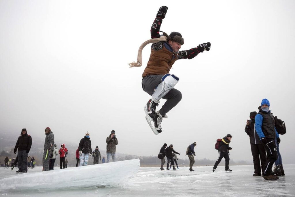 Korcsolyázás 2017-ben, a befagyott Balatonon. Fotó: Fotó: Balaton-átcsúszás/Facebook