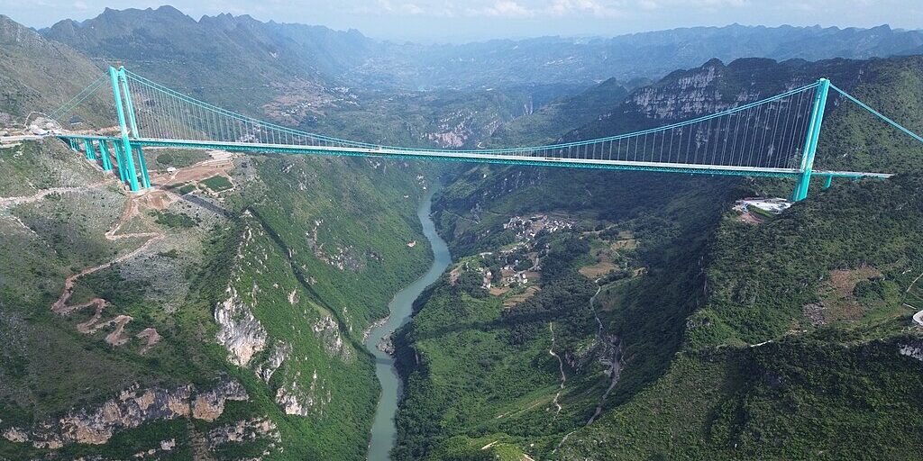 A San Franciscó-i Golden Gate hídnál közel kilencszer magasabban húzódik a délnyugat-kínai Beipan folyó völgye fölött vasárnap megnyitott Huajiang Canyon híd.