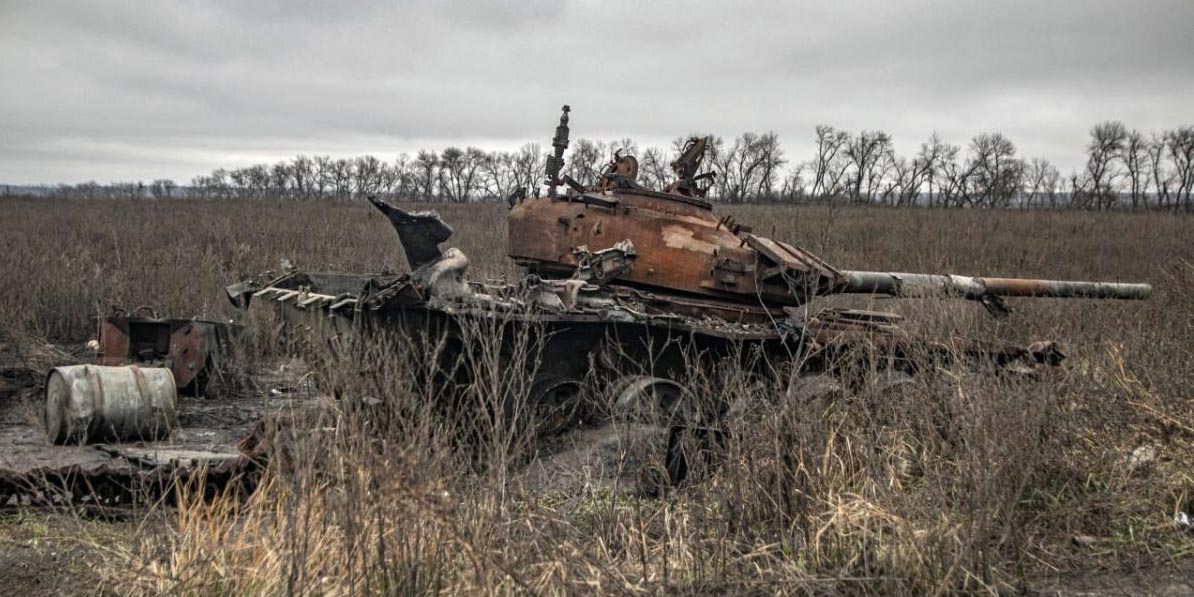Megsemmisített orosz tank Ukrajnában. Fotó: Ukrán Fegyveres Erők