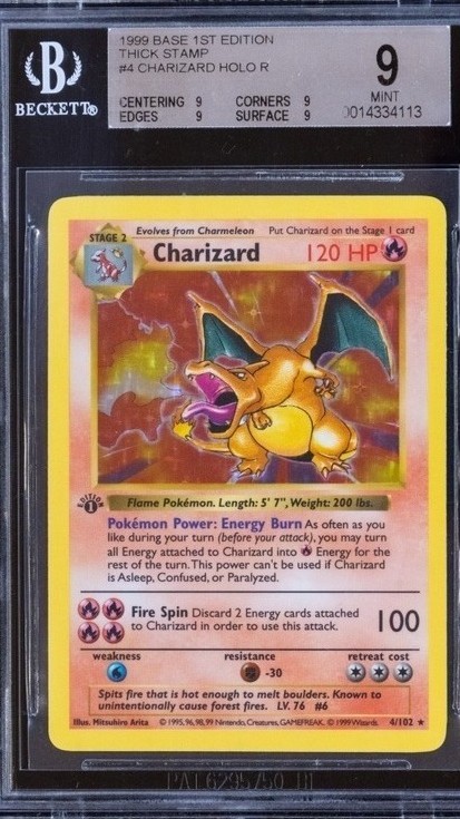 A kártya azért különleges, mert a legelső legyártott kártyák közé tartozik. Ebben pedig a Charizard-figurának egy gyári hiba miatt nincs meg az árnyéka. A későbbi szériákban már orvosolták a hibát, azaz megrajzolták az árnyékot is. Emiatt azonban a „hibás” kártyát a Pokémon-gyűjtők „szent gráljának” tartják, ugyanis rendkívül ritkán bukkan fel árveréseken, pláne hibátlan állapotban.