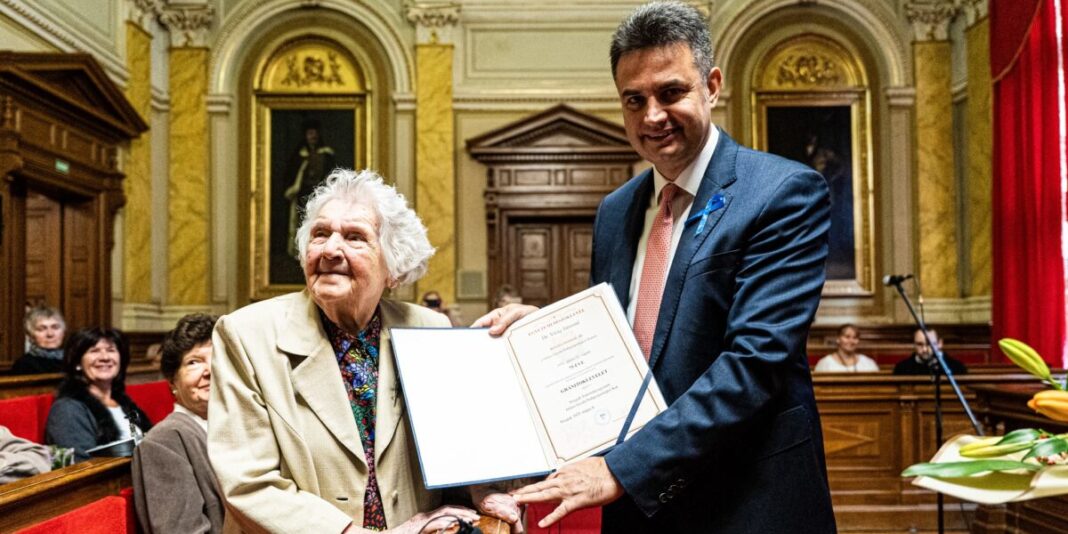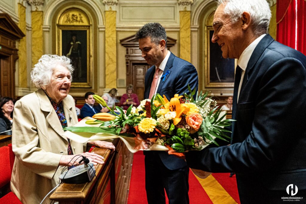 Virág Jánosné 75 éve kapta kézhez tanítói oklevelét és idén töltötte a 102. életévét. Huszonhét évig dolgozott hódmezővásárhelyi iskolákban, és most is kiváló szellemi frissességnek örvend. A diplomáját a város polgármestere, Márki-Zay Péter adta át.