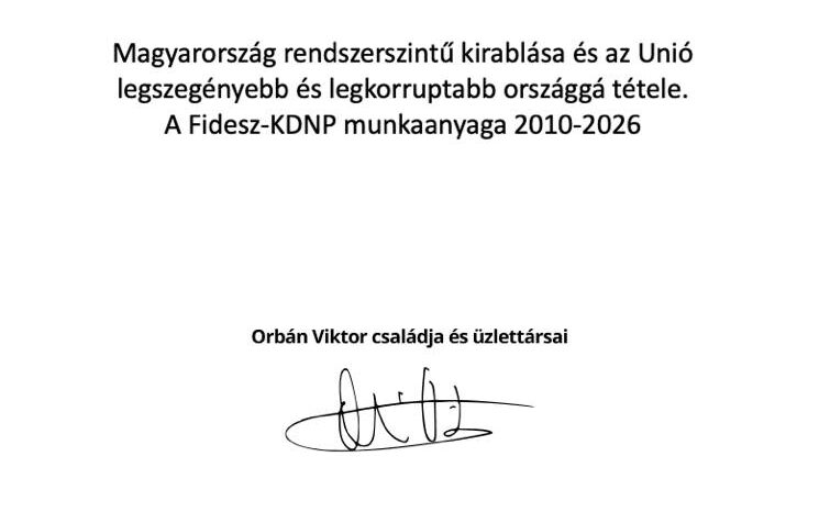 Onnan lehet tudni, hogy a Tisza Pártnak tulajdonított adócsomag valódi, hogy alá van írva. Ezt mondta Orbán Viktor miniszterelnök egy ma reggeli rádióinterjúban. Erre Magyar Péter, a Tisza elnöke egy posztban válaszolt. Leírta, hogy hozzájuk is eljutott egy 1200 oldalas csomag, aminek ez a címe: „Magyarország rendszerszintű kirablása és az Unió legszegényebb és legkorruptabb országgá tétele. A Fidesz-KDNP munkaanyaga 2010-2026.” A sor alatt pedig Orbán Viktor aláírása látható. Ezt pedig el fogják küldeni az Indexnek, hogy ezt is úgy dolgozza fel, ahogy az állítólagos tiszás tervet. Az utóbbi napokban az állítólagos adótervekre komoly kampányt indított a Fidesz, de sokkal valószínűbb, hogy ezt nem a Tisza Párt írta.