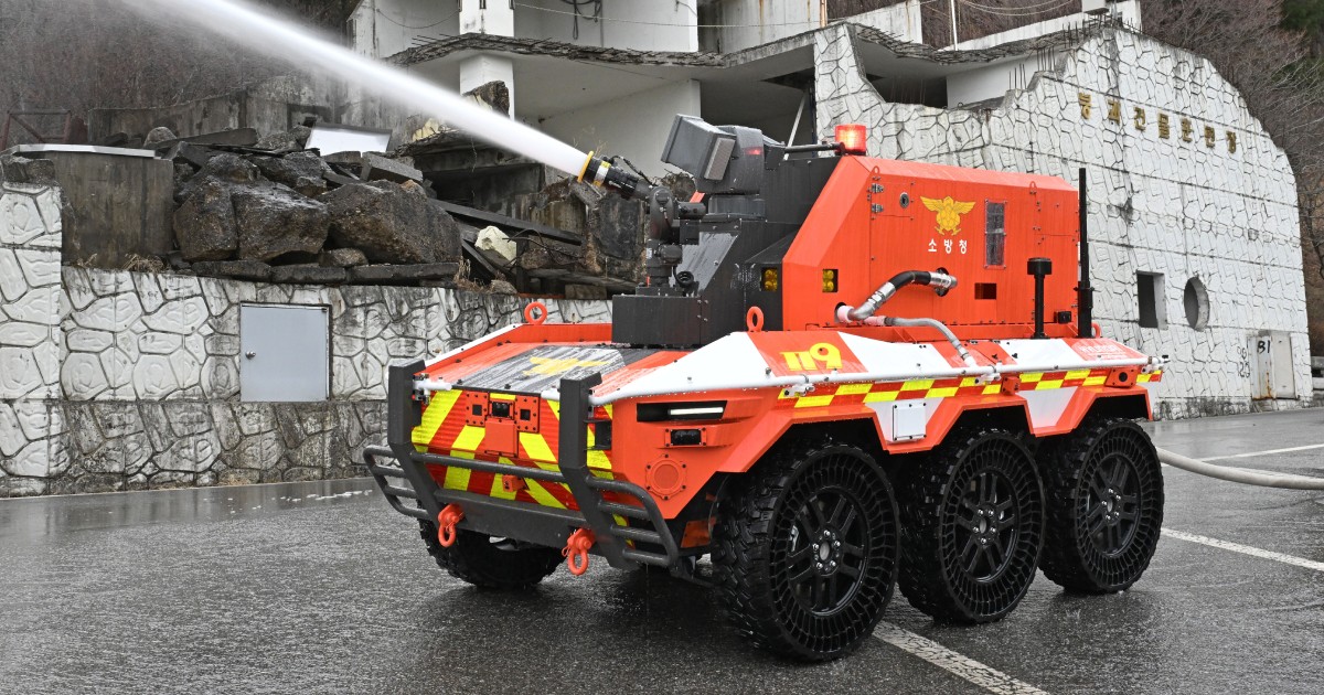 Különleges, ember nélküli tűzoltórobotot mutatott be a dél-koreai Hyundai. A gépet olyan veszélyes helyekre küldhetik, ahová a tűzoltók már nem tudnak biztonságosan bemenni. Például ahol robbanásveszély, mérgező gáz, sűrű füst vagy nagy hőség nehezíti a mentést.