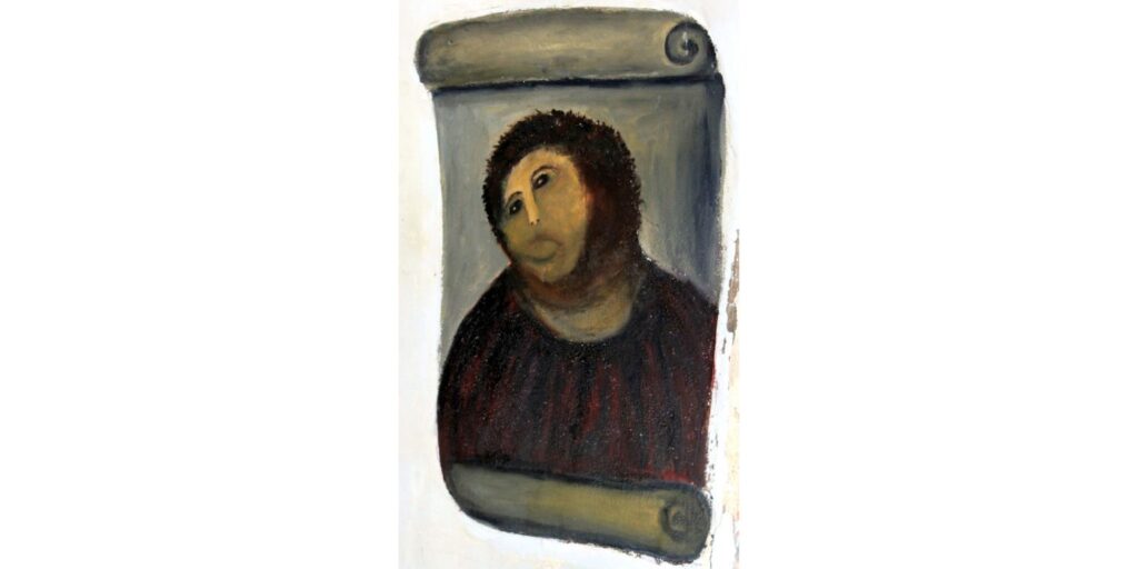 Cecilia Giménez spanyol nő 13 évvel ezelőtt került be a hírekbe. A Borja nevű városban élt, ahol a helyi templomban őrzött freskó, a több száz éves Ecce Homo című festmény nagyon rossz állapotba került. Giménez felajánlotta, hogy ő majd restaurálja a képet (ez az a folyamat, amikor helyreállítanak egy sérült vagy megrongálódott művészeti alkotást). Azt állította, hogy a pap erre engedélyt adott neki. Ezt a falra festett képet kellett felújítani: