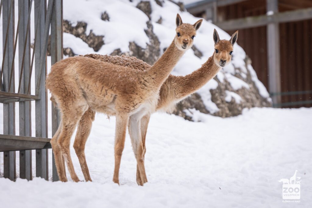 A Veszprémi Állatkert lakói is meglepődtek a nagy havazáson. A vikunyák érdeklődő arccal figyelték, ahogy a hó beborította a környéket. A vikunya a tevefélék családjának legkisebb termetű képviselője. Teste karcsú, nyaka és lábai hosszúak. Világos, vagy sötét fahéjbarna színű dús szőrzete van. (Veszprémi Állatkert)