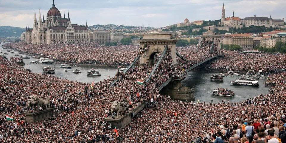 A főváros megtelt a Fidesz és a Tisza Párt támogatóival vasárnap. A Békemenet és a Nemzeti Menet után is megindult a számolgatás, hogy melyiken lehettek többen. Ezt mindig nehéz megsaccolni, de tény, hogy mindkét rendezvényen több tízezer ember vett részt. A Fidesz szerint a Békemeneten voltak többen, a Tisza a Nemzeti Menetet becsüli nagyobbra. Az egyik kormányközeli megyei lap viszont egy olyan képpel illusztrálta a Békemenet nagyságát, amit egyértelműen mesterséges intelligencia készített. A képen jóval szélesebb a pesti rakpart és a Lánchíd sincs a helyén.