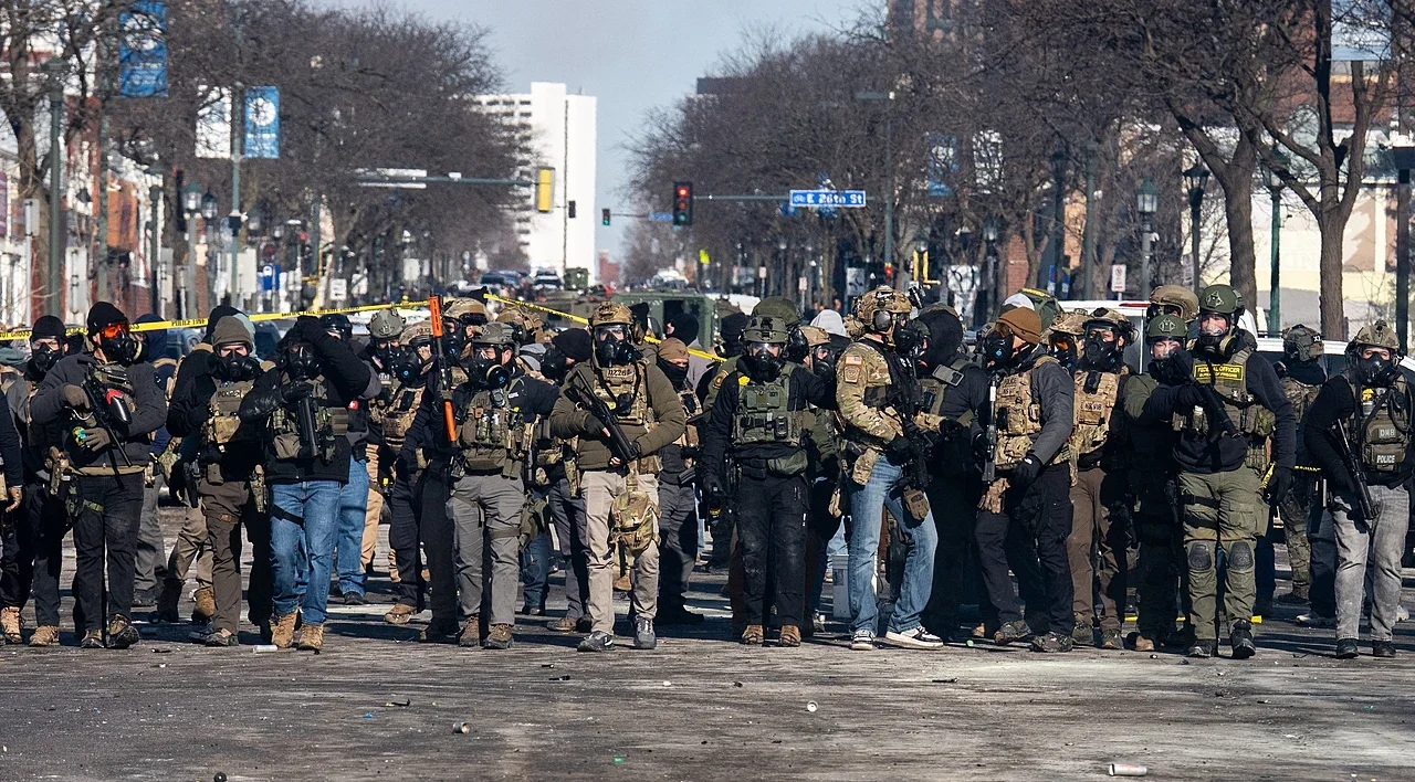 Az ICE ügynökei gyakran maszkban és mindenféle azonosítójel nélkül akcióznak Amerikában. Kép: Wikipedia