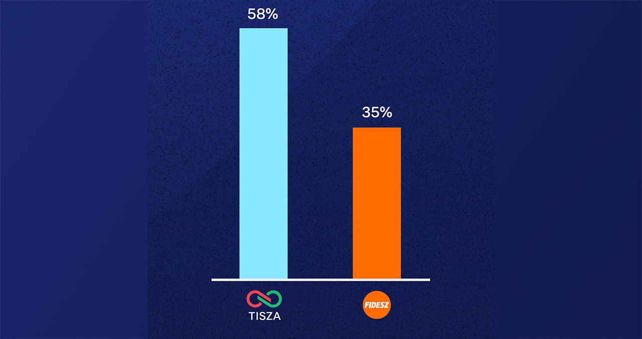 Ami a kormányváltást illeti: a legújabb felmérés olyan magas előnyt mutat a Tiszának, hogy azt a szavazatvásárlás sem hozhatja be. A Medián kutatócég jelentése szerint a Fidesz 35, a Tisza 58 százalékra számíthat. Ez akár kétharmados többséget is jelenthet, ha igaz.